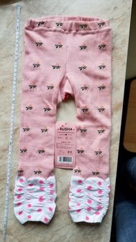 Delivery long to VRN, 22.11 ordered, received only 10.01, like pantyhose, took 24 M, written 90, for a child 86 cm normally, up to 90 maximum. like pantyhose. on the Pope bear. I took home to walk, but the quality is good, you can go outside if the girls under the dress. I recommend, sorry for the larger size is not. elastic bottom free by the way