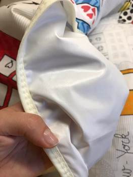 Bright, pleasant to the touch, smooth seams. Size corresponds. I got it fast. I recommend