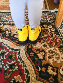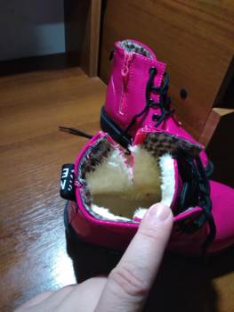 What can i say? Shoes are generally cool, stylish. Now i will always take such, experiment with flowers. Minus one, you can not see the correct size measured. Bolshevat on two fingers. The child of 3.8. well, okay, but for a long time enough. With socks warm. On the sole size 28 we wear 23