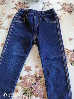This is a great imitation, knitted tight pants in the form of jeans. 4 T slightly small. For a child of 3 years of height 100 weight 15 kg norms, more plump will not be comfortable, tight. The model is more on thin children. I took before that 5 t they are for a lot more, a year will definitely still lie. I think the girl in the skirt will look cool in general.