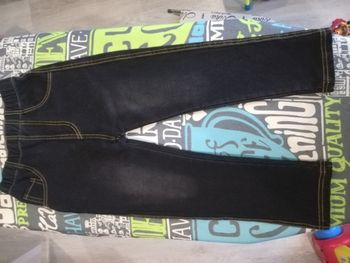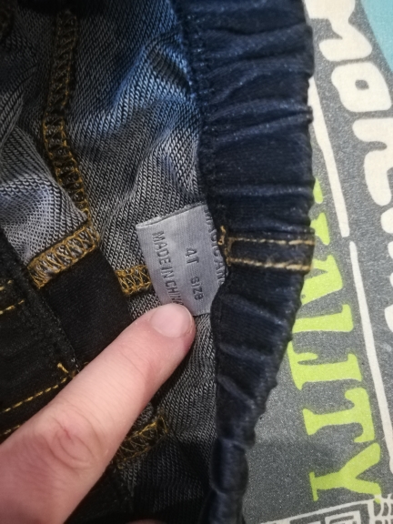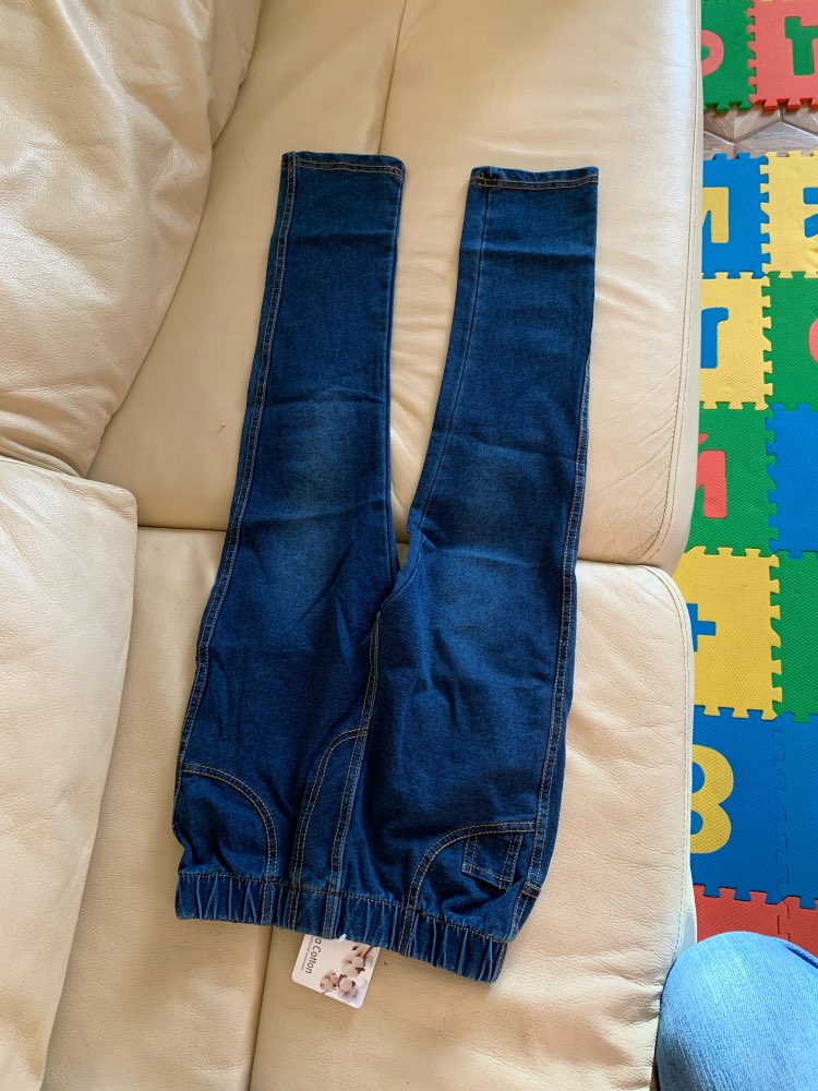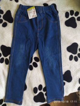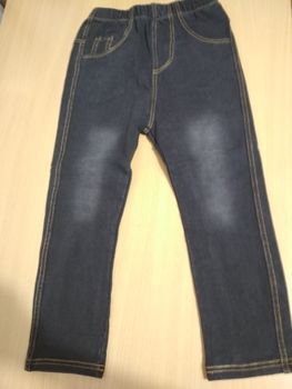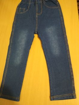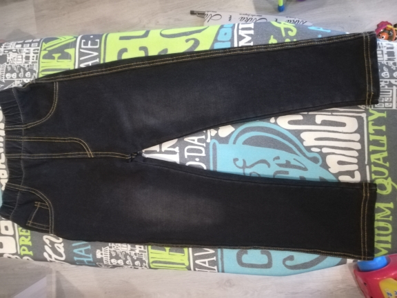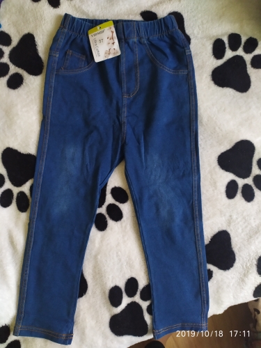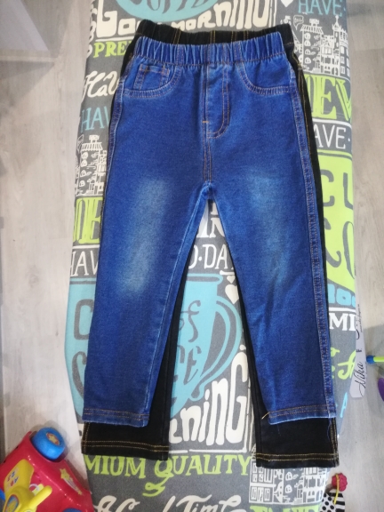 Trousers made of tight jersey, full illusion of jeans, looks good, do not take a large size, otherwise the ass will hang. We will definitely wear it, but when it grows, it turned out to be strong on growth)