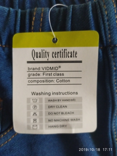 Not the first panties of this store. Like it! I ordered the second blue. Printing the parcel immediately seemed that the pants are more than the size that was expected. I took the pants in the same blue color, ordered earlier, compared and it turned out that the size and length are different, those that have now decent more in size, although the size of both ordered the same-5 tons. Tags are present, indicated on the tag 5 T. Child 3 years old, large baby, height 101. I definitely recommend the product! Worthy!