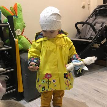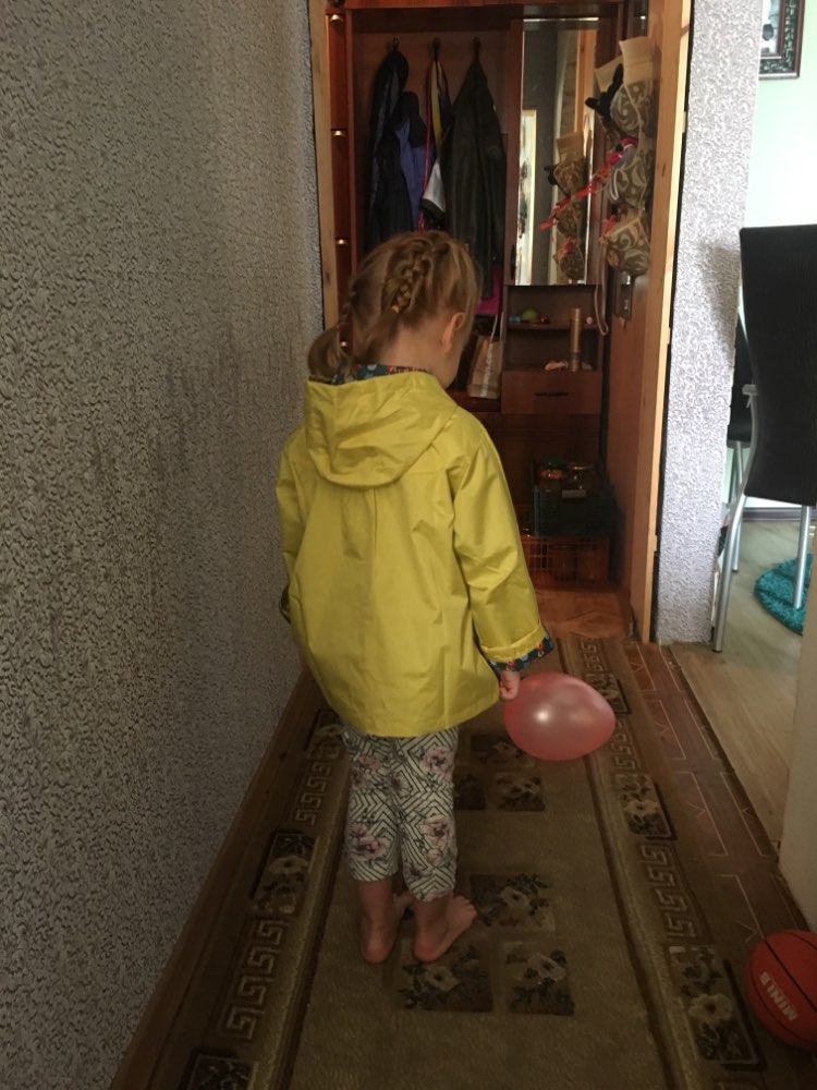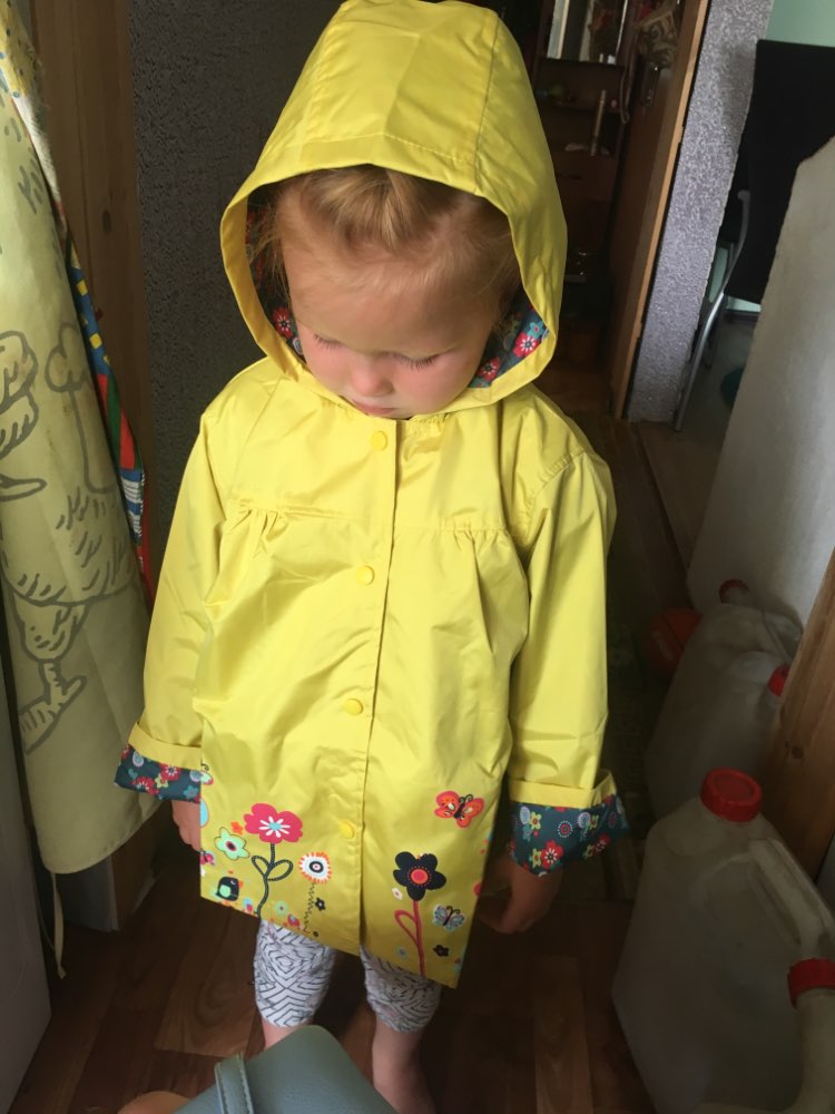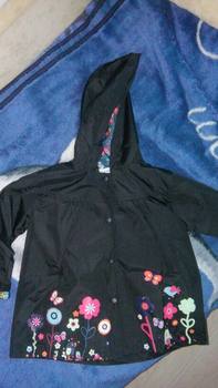The store is just a miracle! Before sending the goods wrote and clarified all the details. The order reached samara for 2 weeks. The jacket is suitable for rainy summer or warm autumn. The top is rubberized, the lining is plashevka from the inside. Threads do not stick out, there is no unpleasant smell. The jacket weighs little, folds easily, does not crumble. The size of the jacket corresponds!!!! After reading in the comments that someone size 2 t in 2 years was too small, ordered a daughter 3 t. So, 3 t is the size of the height of the child 100, which the seller claims. Now the jacket is too big, in the spring it will walk.