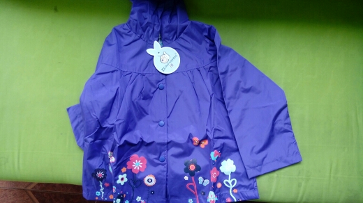 Light windbreaker-raincoat. Quality decent, sewn very neatly, immediately there was a smell but very quickly weathered. I took the child for a height of 115, the sleeves just a little bit with a small margin. Delivery mega fast. The product and the store definitely recommend.