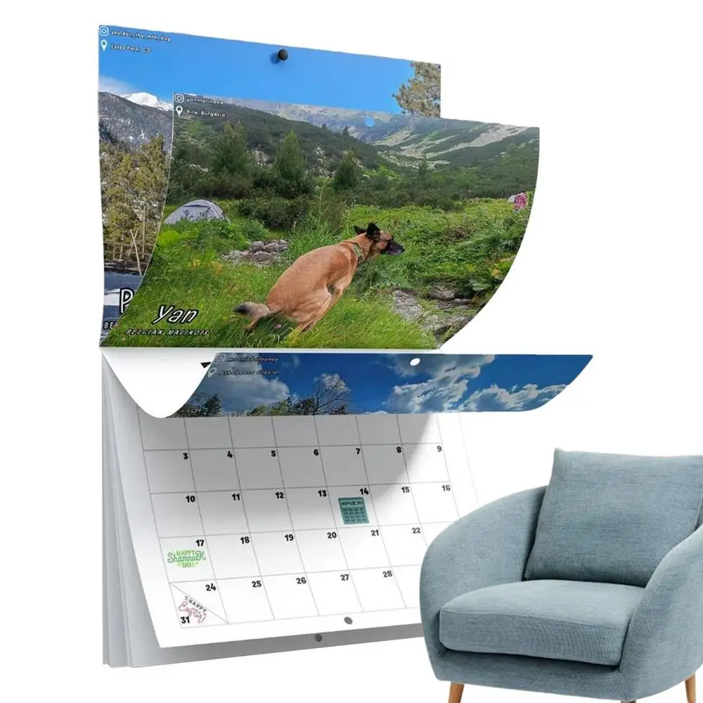 4.Adorable Dog Calendar: Hang our Adorable Dog Calendar at your convenience at home, work, or school. This 12-month calendar features funny dog photos in beautiful landscapes. Plan the year ahead with its spacious layout and never miss any important dates.