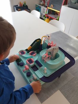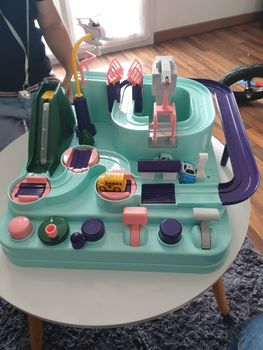very funny, super toy! easy to peace together, but hard to play :) 3 cars good for 3 kids, the shipping so fast and recommended delivery, SO it worth the price, sooo good, I recommend the store!!!!