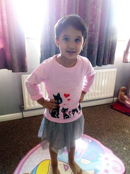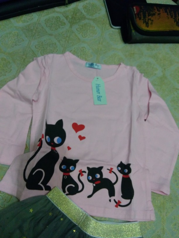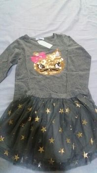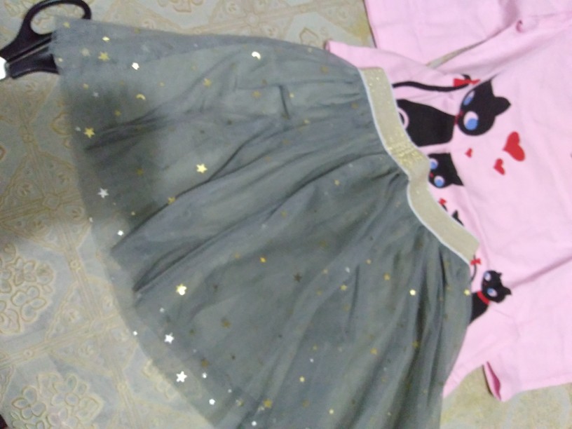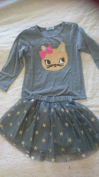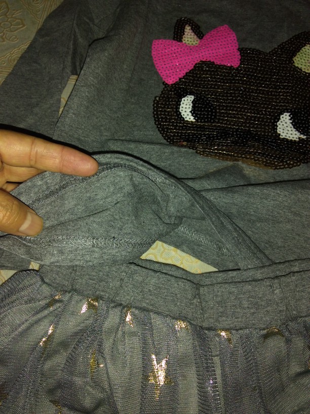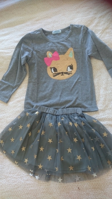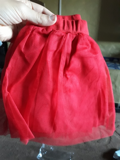 Good looks, tulle skirt is of flexible tulle made and the shirt is tasty strechie. Print and seams are good and fast delivery.