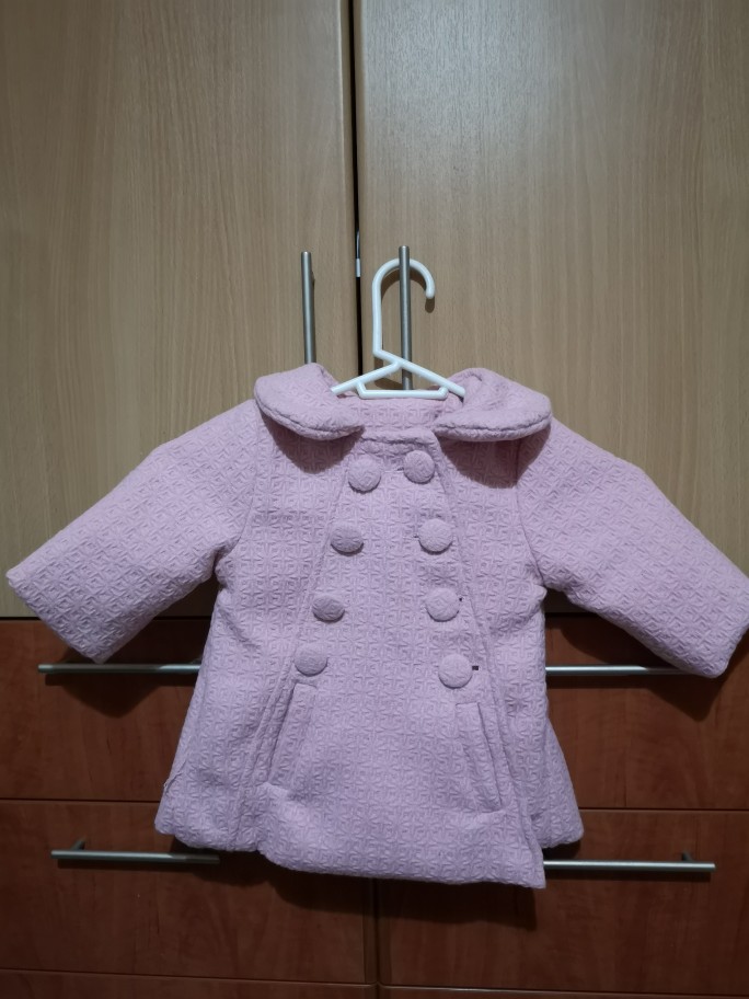 9 months girl. Only the sleeves was a little bigger but I turn them inside. Very nice coat as the description