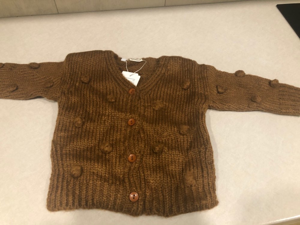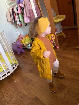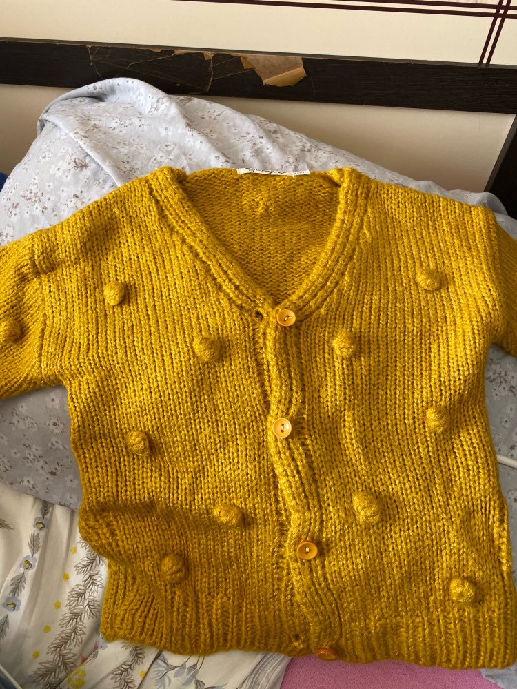 Sweater super. Daughter 2,2 sleeves are a little big. Looks like an oversize. I advise you. To Minsk less than a month