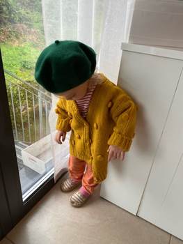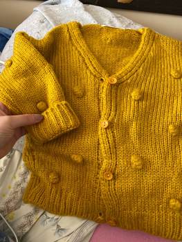 I do not share the general delight from the jacket. On the child 107 growth looks like an oversize. Yarn of cheap kind, glitters, knitting is not dense. For its price is normal, but, judging by the reviews, expected the best