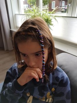 Came in a month, beautiful, who has straight slippery hair do not hold on the hair.