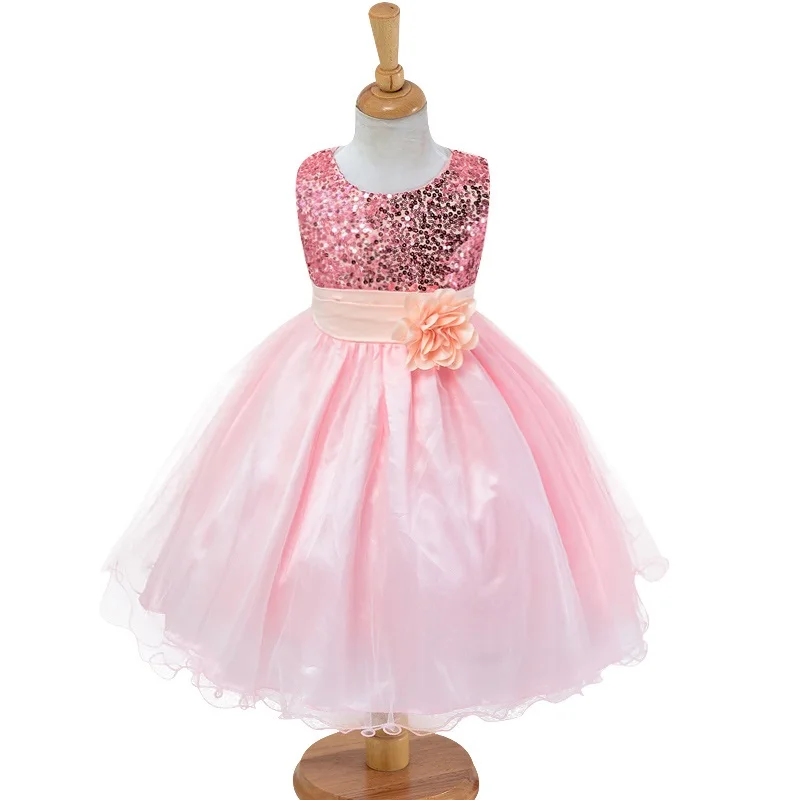 The package includes one Girls’ Sequined Flower Decorated Dress.