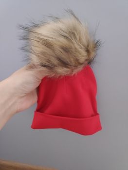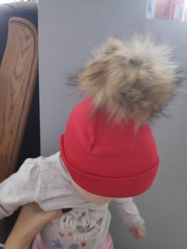 Nice hat, pompom is a little curve, but its because shipping. For 10 months girl is good but I have to wrap it a little bit.
