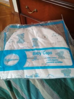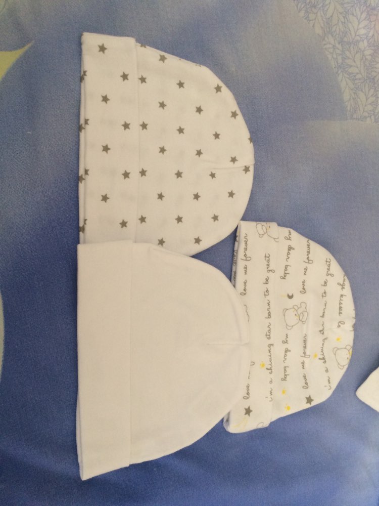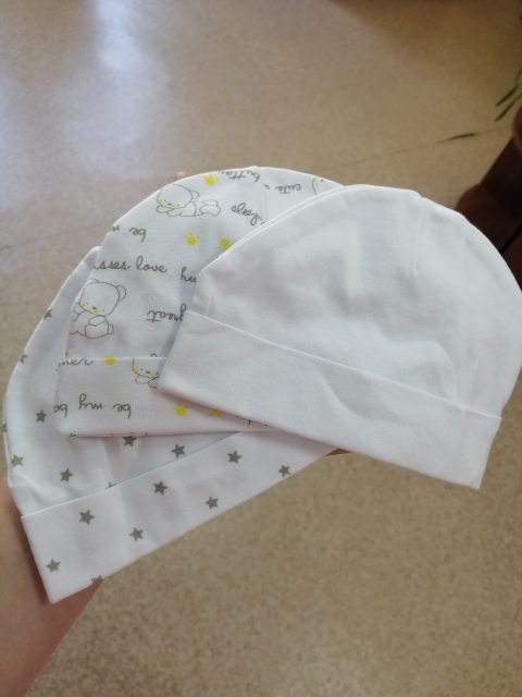 Quality is good, there is a small smell, but after washing i think it will go away. In the kit 3 caps, but on a completely newborn are too big