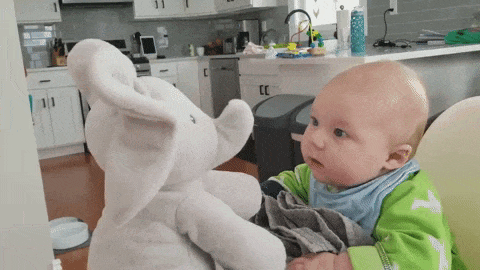 “Daisy is 6 months old and she always wants to play peek-a-boo. On a beautiful day, I found this cute elephant and I decided to give it to Daisy. Awesome! She was really excited, I am sure every child in the world is attracted to this elephant.”