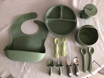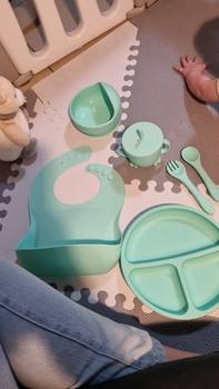 1.6pcs Self-Feeding Set:Our 6pcs baby feeding set accommodates all baby feeding stages, from purees to solid foods. It includes a bib with a food catcher, 1 x Silicone bowl 1 x Silicone bib 1 x Baby cup with straw and lid 1 x dinner plate 1 x Silicone spoon 1 x Silicone fork. Your baby will be an independent eater in no time!