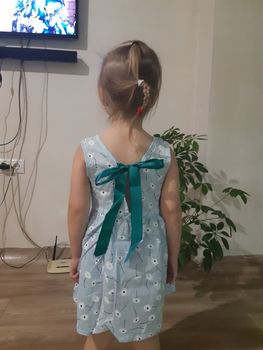 Great dress! The child really liked it. For 3 years took 5 size. Shipping super fast. In Krasnodar within 2 weeks came. Thank you pradovtsu for your promptness.