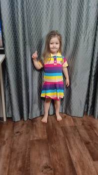 The dress is super! Delivered on time as promised, at the age of 3G just right. To the touch is a pleasant fabric. Colors are bright beautiful!