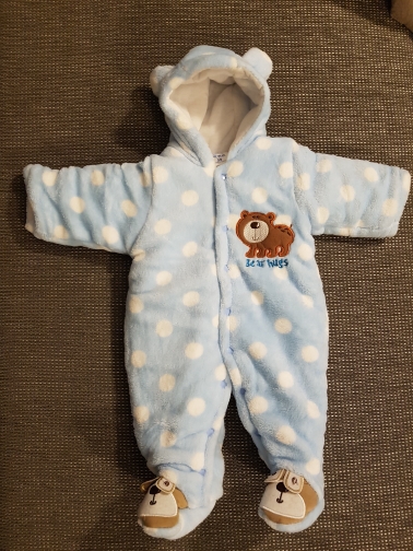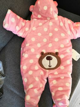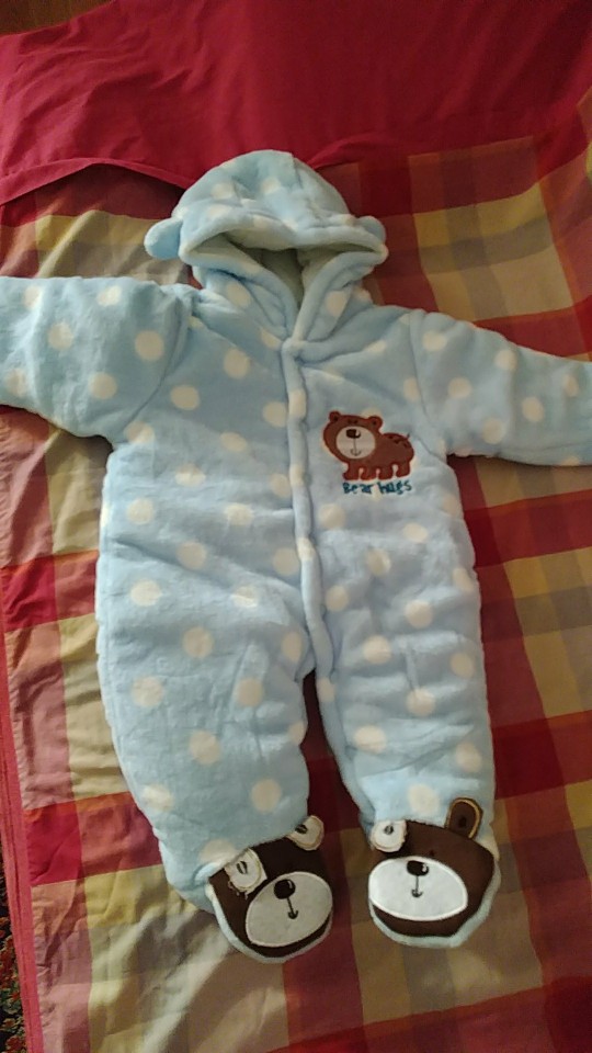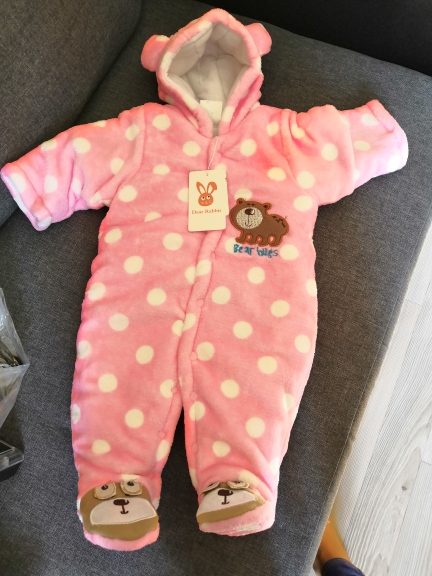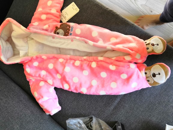 The parcel was almost a month. The overall is very beautiful, warm, fastened to buttons. very convenient. The store put a bib in a gift. I am satisfied with the order, i recommend the seller.