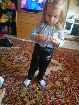 Beautiful leggings!!! We buy a second time, from the previous ones just grew up. Burgundy color-noble and beautiful, exactly matches the photo. I recommend.